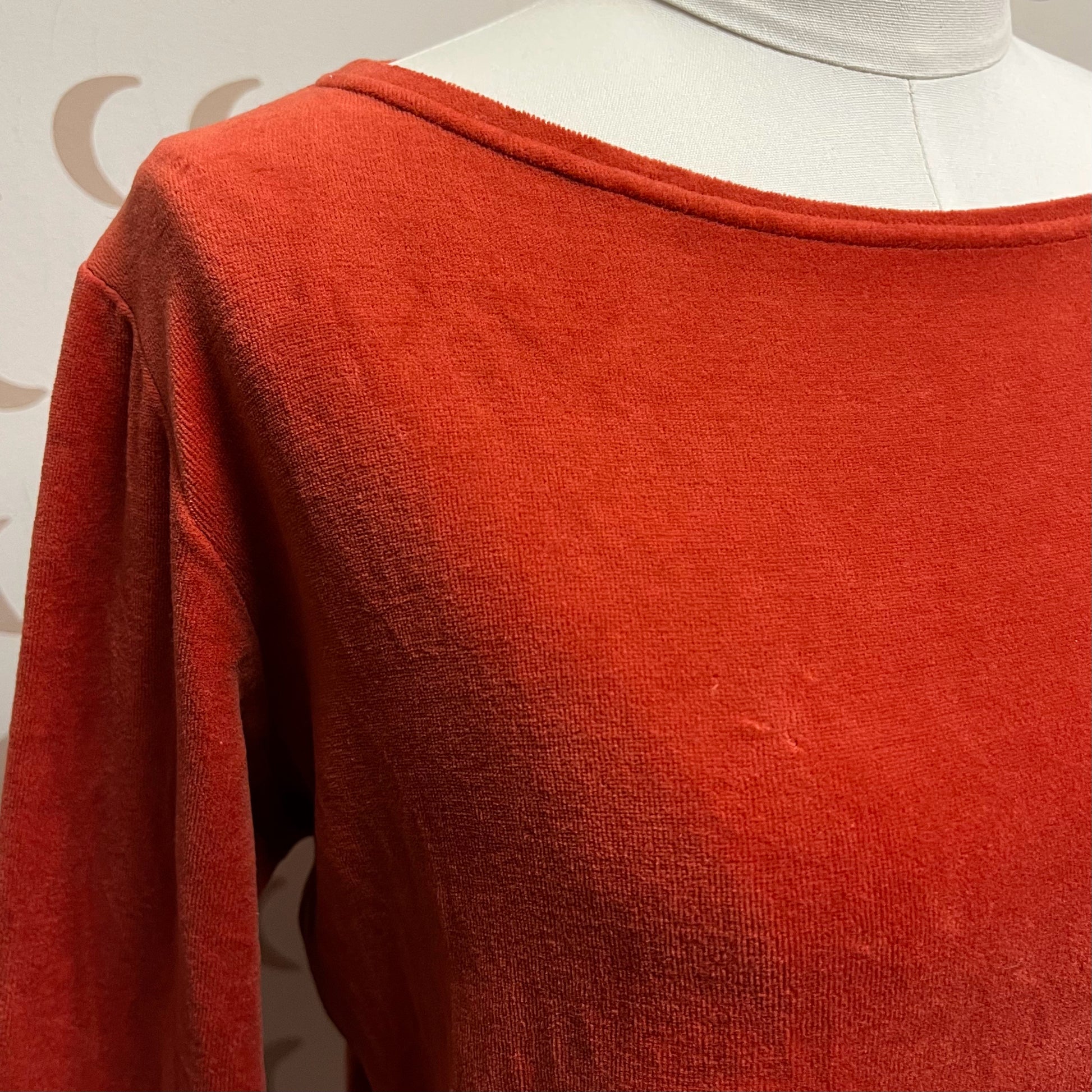 Good condition! Rust velour boatneck.